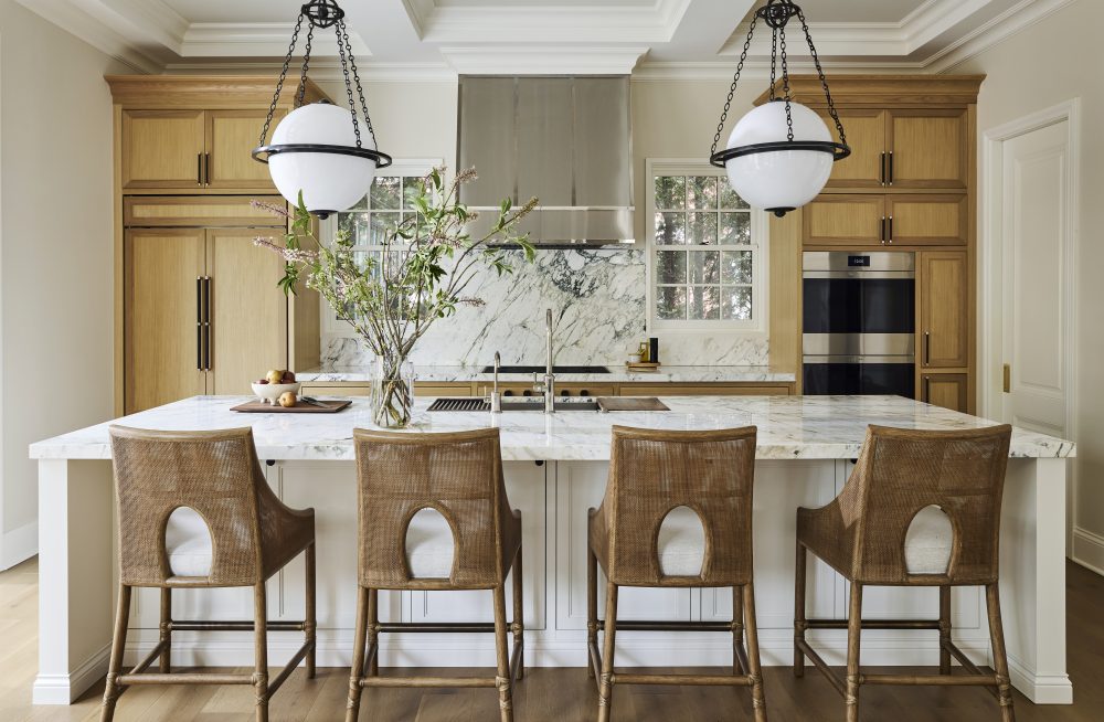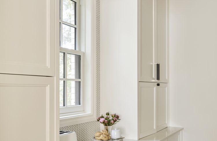 Thoughtful details—such as integrated storage, subtle reveals, and carefully selected hardware—add depth without overwhelming the architecture. Stone surfaces, open shelving, and tailored millwork elements introduce contrast while maintaining a timeless aesthetic.